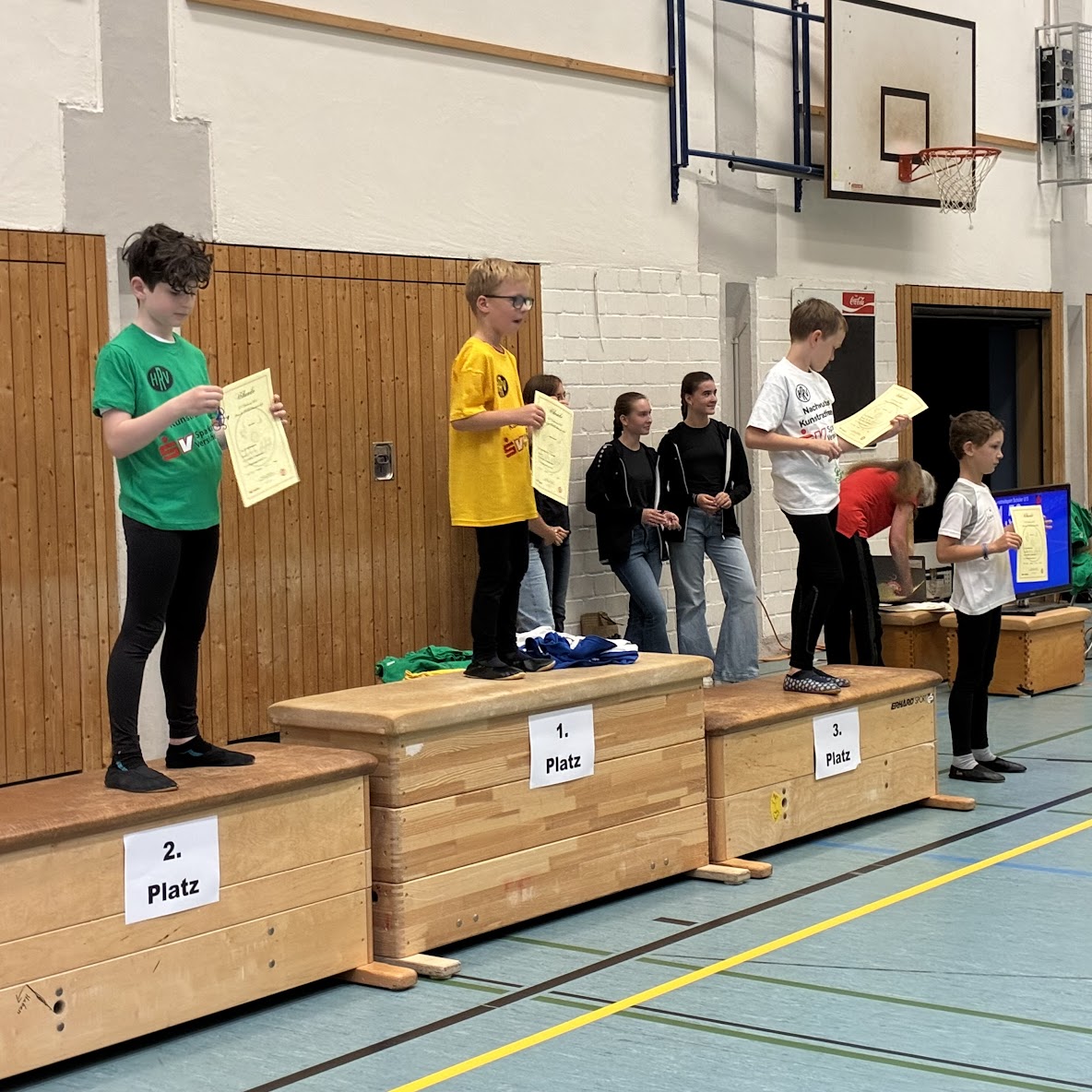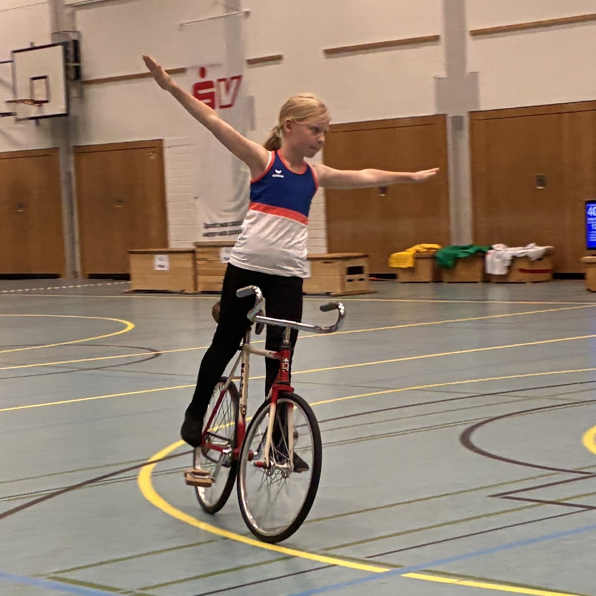 Insgesamt 5 junge Mövia Athleten und Athletinnen hatten dieses Jahr die Qualifikation zum SV Fördercup/Hessische Nachwuchsmeisterschaft gemeistert und die Starterlaubnis für dieses Event erhalten. In der Gruppe der Jüngsten trat Newcomer Jonah Nielebock an den Start. Er zeigte in Wächtersbach eine sehr konzentrierte Kür, die mit einer neuen persönlichen Bestleistung von 15,33 Punkten und lautem Jubel seines Fan-Clubs belohnt wurde. Mit diesem Ergebnis setzte sich der erst 6-jährige gegen die hessische Konkurrenz durch und belegte den 1. Platz. Max Klassert präsentierte in der Altersklasse U13 ebenfalls eine tolle Darbietung. Mit neuer persönlicher Bestleistung von 21,56 Punkten belegte er den 1. Rang. In der Altersklasse U13 weiblich stellten sich 2 Mövia Sportlerinnen der hessischen Konkurrenz. Noa Blanco-Braun nimmt erst seit diesem Jahr an Kunstrad-Wettkämpfen teil und konnte direkt in der ersten Saison die Qualifikation zum SV Fördercup meistern. In Wächtersbach präsentierte Noa eine sehr schöne und fehlerfreie Kür, die mit neuer persönlicher Bestleistung von 24,85 Punkten und Platz 11 honoriert wurde. Für Julia Kohl verlief der Wettkampftag nicht wie erhofft. Bis zur 4. letzten Übung verlief ihre Darbietung einwandfrei. Doch dann geriet sie mit dem Fuß in die Speichen und stürzte schwer. Tapfer beendete sie ihren Vortrag und landete mit 35,60 Punkten auf dem 7. Platz. Franziska Kunkel ging in der Altersklasse U11 an den Start. Die E-Kader-Sportlerin präsentierte beim Saisonhöhepunkt eine sehr schöne Kür, die mit 24,62 Punkten bewertet wurde. Mit diesem Ergebnis belegte Franziska im 16-köpfigen Starterfeld einen tollen 6. Platz.